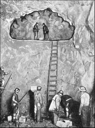 The surveys were carried out in the heart of winter over a bleak and mountainous district, but, despite blizzards and snowstorms, the calculations proved to be extremely accurate. Two weeks after the undertaking had been approved and handed over to the contractors, tunnelling began at a camp on the western side of the Cascades. And it was not long before three modern construction camps had been erected, two at either end and one in the middle at Mill Creek where the sinking of the shaft to the proposed level of the tunnel had begun. Most of the vast amount of the tunnel-boring machinery had also been transported into the wilderness of this rugged district. The difficulties that confronted the engineers were the seemingly impossible time limit imposed—a bare three years to construct and finish eight miles of tunnel—the probability of striking subterranean streams, and the uncertainty as to the nature of the rock and soil likely to be encountered during boring operations. The time restrictions, in addition to the length of the tunnel, also made it necessary to begin work at several different places simultaneously, for it was quite clear that only a relatively small number of men and machines could concentrate at the east and west entrances. The construction of the Mill Creek shaft, two and half miles from the east portal, afforded two additional working faces. When in August, 1926, Mill Creek shaft was completed, great skips were erected at the mouth to haul up the spoil from the excavations. Pumps were also installed in readiness to deal with any water that might be encountered. Light contractors' engines for hauling rock, power shovels, drills and mechanical excavators (which were to assist both in the building of the main and the pioneer tunnels) were lowered down into the earth. The pioneer tunnel, 8 ft. by 9 ft., was begun in two places at once, eastwards from the entrance at Berne, and also at Mill Creek shaft. Work on these two sections of the pioneer tunnel, which met over two years later, proceeded in conjunction with work on the main tunnel through which one day the railway would run. As the dimensions of the pioneer tunnel were considerably less than those of the main one, it was always well in advance of the headings of the major operation. Cross-cuts were hewn from the pioneer tunnel into the path of the approaching main tunnel. This procedure made it possible for the constructors to keep the work going at several faces. Other important problems were also solved by this pioneer tunnel method. The small tunnel was used to drain away water from the large one. Through it ran the light trains, carrying labourers and supplies, and the rock hewn from the faces reached by the cross-cuts. Through it, too, passed the huge pipes which furnished compressed air for driving the drills and shovels, and the electric power lines that operated other machinery and illuminated the different sections. It also proved an invaluable asset in ventilation, and kept the main bore free of obstruction, making it possible for the concreting of the walls to follow closely upon the heels of the actual drilling and widening processes. What occurred at one pioneer head is typical of the activity at the remainder. The work of the drills was divided into so-called "rounds." Each round meant an advance of 8 ft., the time for a round counting from the moment the drills were started against a new face of rock until they were ready to drill the next face. Five rounds in 24 hours was considered excellent. The usual round occupied about 4-1/2 hours.