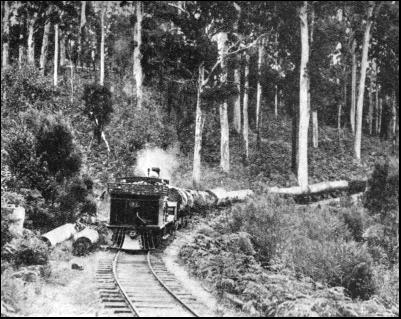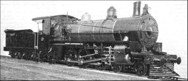 The first engines, of which there were four, were modelled closely on some 0-6-0 engines designed by Connell, and which were then working on the London and North Western Railway. The alterations consisted mainly of replacing the trailing driving wheels by a pony truck, making them 0-4-2 engines. They were built by Robert Stephenson, had cylinders 16 in. by 24 in., coupled wheels 5 ft. 6 in. diameter, a steam pressure of 120 lb., and they weighed 33-3/4 tons. The tender, a six-wheeler. weighed 22-1/2 tons. For years the Australian railways imported their locomotives from Great Britain and the United States until their own workshops developed and supplied the requirements of the Commonwealth. Except for one railway—the Midland Railway of Western Australia—which operates about 277 miles of 3 ft. 6 in. gauge track from Midland Junction, near Perth, to Walkaway, on the West Coast, there is no company-owned passenger-carrying railway of considerable size in the continent. This company is concerned mainly with carrying wheat and general merchandise. Another railway in Western Australia is concerned entirely with timber. It is owned by Millars' Timber and Trading Company, of Perth, and consists of 239 miles of 3 ft. 6 in. gauge track. There are eight lines operating in lengths varying from four to sixty-three miles, located in sections of the Darling Ranges along the south-western coast. The railway taps the Jarrah forests, and the timber is famous all the world over for its resistance to decay and insects. The trees provided the sleepers for the Trans-Australian Railway. The gauge of 3 ft. 6 in. is used in Western Australia, Queensland, part of South Australia and in Central Australia and on the North Australia Railway. It was adopted because of its cheapness, the capital cost in Western Australia being kept down to about £5,000 per mile, a low figure compared with that of other States.