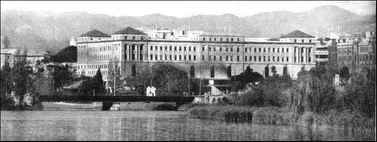 By then four capitals, Brisbane, Sydney, Melbourne, and Adelaide were linked by rail, but Western Australia was cut off by the desert and not until 1917 did the transcontinental railway connect Perth with the other capitals. Indeed, the desert rendered Western Australia an island : the only communication was by sea. The two dead ends at Kalgoorlie, Western Australia, and at Port Augusta, South Australia, were linked by a single track 4 ft. 8-1/2 in. gauge, making it possible to travel from Perth, the capital of Western Australia, to Brisbane, 3,372 miles. Owing to the difference in gauges at various places, it is not possible to travel all the way in the same train. The linking of Kalgoorlie with Port Augusta by the Trans-Australian Railway is an engineering achievement of which the Commonwealth is justly proud. The railways of the Western State had been pushed eastwards to the mining city of Kalgooriie, 375 miles from Perth, and the railways of the State of South Australia had spread north and west from Adelaide to Port Augusta, a distance of 260 miles. Between Kalgoorlie and Port Augusta lay 1,051 miles of practically waterless and uninhabited country. One or two explorers had, in a period of forty years, succeeded, after terrible hardships, in getting across, but from the commercial point of view the barrier was impassable.