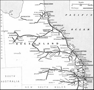 After having booked in advance we board the train at Perth, bound for Brisbane. (The fare from Fremantle, the port for Perth, which is twelve miles away, is the same.) We have paid £23 14S. 6d. for our first-class ticket, which provides reserved seats, sleeping-berths and meals on the Perth-Kalgoorlie and Trans-Australian lines ; after Port Augusta we will have to pay for our meals and also for sleeping-berths. First we are on a 3 ft. 6 in. gauge of the Western Australian Government Railways. At Kalgoorlie we have to change trains for the 4 ft. 8-1/2 in. standard gauge of the Trans-Australian Railway ; at Port Augusta we change to the 3 ft. 6 in. of the South Australian Government Railways, at Terowie we change to the 5 ft. 3 in. gauge, at Albury to the 4 ft. 8-1/2 in. of the New South Wales Government Railways. South Australia's capital, Adelaide, and the Victorian capital of Melbourne were, until recently, the only two capitals linked by railways of the same gauge. The Queensland gauge is 3 ft. 6 in. We have also to change trains at Adelaide, Melbourne and Sydney, having to wait seven hours and a quarter at Melbourne and nine hours twenty-eight minutes at Sydney. Therefore the reader will understand why Australians are apt to make strong comments on the subject of gauges. Now that we are in Brisbane we can see how varied are the problems that confront the Australian railroad engineer. The builders of the track across the Nullarbor Plain did not have enough water, the Queensland engineers have too much of it. Innisfail has an annual rainfall of 150 in. This place is some thirty miles south of Cairns, which is seventeen degrees south of the equator, and the rains are of the monsoon character. From the beginning of the first railway Queensland pursued an active policy of decentralization, and lateral lines were built long before any coastal railway was undertaken. The three main systems, southern, central and northern tap all the pastoral lands of the State. The Queenslander is the most light-hearted of all Australasians. Sir George Bowen, the first Governor, said that when he took office he found nothing in the treasury except a few coppers. The new State soon had a better bank balance. In 1863 the Premier, the Hon. R. G. W. Herbert, visited England, and as the result of his observations the first railway Bill was introduced. Ipswich was decided upon as the starting point for the railway, tenders were invited and the contract for a twenty-one and a half mile railway to Grandchester was awarded to the English firm of Peto, Brassey and Betts. Construction work began on February 25, 1864. Six months later a vessel arrived from England with rolling-stock and a number of mechanics. The first section was opened on July 31, 1865. In those days there were two Houses of Parliament ; both adjourned for a fortnight to attend the opening ceremony at Grandchester and a racing carnival at Toowoomba. Mr. Abram Fitzgibbon, C.E., recommended a gauge of 3 ft. 6 in., and his advice was followed. The policy has been criticized, but the Queenslanders maintain that it is the best for their State, and has never once proved inadequate. When their neighbours in New South Wales (gauge 4 ft. 8-1/2 in.) make comments, they reply that tlie smaller gauge is better for Queensland, with her sparse population and large country. "We have never heard of New South Wales desiring to send us any goods which could not be carried by Queensland," Queensland declares. There are heavy ranges with sharp curves on the Queensland side of the border. The most difficult item for the Queensland railways to carry was a German tank, which had been captured by Australian troops in France. The difference in gauges formerly necessitated transhipment of passengers and goods at border stations, but this difficulty has been overcome by the construction of a 4 ft. 8-1/2 in. gauge line from Brisbane to Kyogle, New South Wales. This shortened the former journey by 102 miles, and eliminated the break in the gauge. Queensland has the largest railway mileage of all the Australian systems. The main line to the north is more than 1,200 miles long, and there are lines running into the interior nearly 600 miles long. No other State in the Commonwealth has so many dead-end branch lines in proportion to the total mileage. Rail motors are being used more extensively on the branch lines. It is during the rainy season in the mountains that the engineers have to be on the alert. After a storm an engineer on such a line may find that a bridge has been swept away by the tremendous volume of flood water ; a torrent has taken the track in its stride, a landslide has left a stretch of line in the air, or huge trees have crashed upon the track. It is then that the vehicles fitted as breakdown wagons and the travelling crane come into use. There are wagons fitted with appliances to spray poison on the track, for not only does the railway engineer have to battle with storm, he must also keep the way through the jungle clear. Trains on some lines are so infrequent that the jungle is swift to close impenetrably upon the track. These lines depend upon seasonal traffic, and may be idle for a long period. The railway looks after its passengers' needs, and the charge for meals is very reasonable. At the Brisbane central station the charge for breakfast is 2s. (It should be explained that Britons in the tropics call breakfast a meal eaten between 11 a.m. and 2 p.m. A three-course luncheon or dinner is priced 1s. 6d. Passengers may obtain on application to the station-masters, an ice-chest, the charge for the hire of which is 1s. 3d. for the first 100 miles and 5d. for every additional fifty miles or part thereof. The chest is of convenient size for placing under the seat of the carriage, and is of great convenience to travellers during the summer months. South of Queensland the two great States of New South Wales and Victoria have developed one of the finest railway system