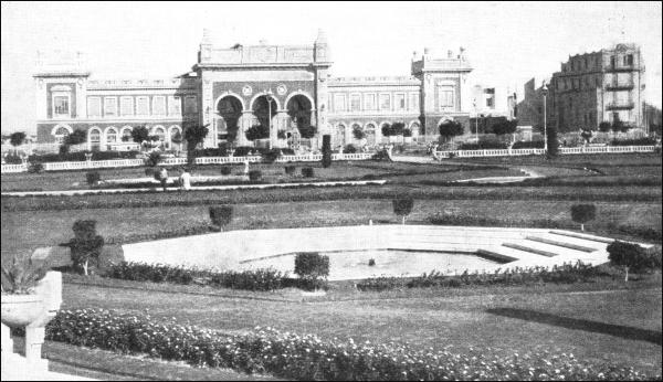 On the platform of the imposing station at Cairo waits a crowd which is an amazing medley of types and variety of costume, with hotel-porters in plenty, looking for their patrons. The fine hotels of Cairo are world-famous, and on the terrace of more than one, an elegant and cosmopolitan crowd sits basking in a February sun, and shivering pleasantly at the thought of the snow and frost left behind in Europe. In the modern quarters of Cairo, the wide streets, in which, the traffic is controlled by white-uniformed "shawishes," are lined on either side with trees and fine buildings, while gardens and monuments adorn the squares, giving the city the air of a great metropolis. Seen from the Pyramids across the green strip of the Nile Valley, Cairo seems to be dominated by the pointed silhouette of the Citadel among a sea of roofs, domes, and minarets. In the Musky, or bazaars, of Cairo is to be found a collection of glassware, copper, gold, carpets, beads, shawls, and perfumes, whose heady scent mixes with the aroma of coffee and cigarettes and with that of the frying confections from neighbouring restaurants. The "Sunshine Express," a luxury train composed of restaurant and sleeping cars, takes passengers to Upper Egypt in a single night, and Abydos, Dendera, Thebes, Karnak. Luxor, Edfu, and Aswan soon become so many familiar names. Combined tickets between Cairo, Luxor, Aswan, and Shellal, including fares and sleeper and hotel accommodation, are issued at cheap rates during certain months. There are three trains a day in either direction between Cairo and Luxor, the journey of 340 miles taking about twelve hours. To Aswan and Shellal, there are two trains a day in either direction which cover the distance of 480 miles in about seventeen hours.