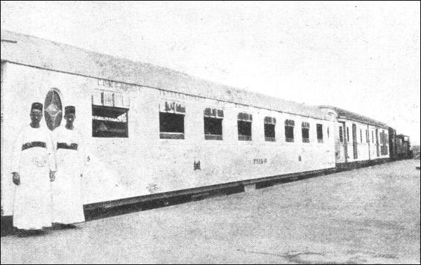 The number of locomotives possessed by the Egyptian State Railways is over 600, all of which have been built abroad ; but many are over thirty years old and are gradually being replaced by more modern engines. The principal locomotive and carriage shops are at Bulak, Cairo, but they are now being transferred to Abu-Zaabal, about seventeen miles from the city. There are four locomotive districts - Cairo, Alexandria, Lower Egypt, and Upper Egypt. The Cairo District works the express service of Lower Egypt with "Atlantic" type locomotives and the Cairo suburban, traffic with 2-6-2 type tank engines. A new running shed at Tanta operates all the principal provincial services of Lower Egypt. Although the building of locomotives is not undertaken in the locomotive shops, a considerable amount of rebuilding is carried on, and modern methods are employed. Oxyacetylene and arc-welding have been introduced, and their use extended in various directions. Spray painting of steel rolling stock and of locomotives is also being introduced. Experiments with a steam rail-car in 1926 led to the acquisition of many examples of this type of vehicle. Carriages number nearly 1,600 and goods wagons 14,300, with 650 miscellaneous vehicles. The carriages are all-steel bogie stock with elliptical roofs which have been found suited to Egyptian requirements. In 1931 gas lighting of passenger vehicles was abolished, and all stock is now electrically lighted. Roller bearings also are taking the place of the standard brass bearings, Goods wagons are mainly of the 10-tons box type, and, although there is a considerable amount of bogie stock the four-wheeled wagon seems to be preferred. All-steel stock is gradually replacing the wooden wagons. Ten streamlined Diesel rail-cars are being built by Ganz and Company of Budapest for the Egyptian State Railways, four of which have already been delivered ; the remaining six are due to be in service before the end of 1935 These are the first rail-cars in the world, it is understood, to be equipped with air conditioning plant. Each car is driven by a Ganz-Jendrassik 200 h.p. heavy oil engine with straight mechanical drive ; it is 72 ft. 2 in. long, and accommodates seventy-one passengers. Some of these rail-cars will be used on the new railway between Cairo and Suez, which at present is used for goods traffic only. Cold water fountains are a feature of the interior equipment of the cars, an amenity that will be much appreciated by passengers in the summer on this new desert railway. Passengers carried on the Egyptian State Railways in the year 1933-34 numbered over thirty-four millions, as many being carried in one month as in a whole year fifty years ago. Trains are classified as expresses, semi-expresses, perishable, and goods. All express trains are formed of bogie corridor coaches. First-class coaches are divided into compartments which are fitted with electric reading lights. Restaurant, sleeping, and Pullman cars are attached to the principal trains. Large numbers of tourists are carried during the winter season, special trains being run to and from the quays at Alexandria for their conveyance. Luxurious liners leave Europe for Egypt several times a week, and giant multi-engined air liners also arrive regularly at the port of Alexandria. The "Taurus Express" reaches Cairo by way of the Balkans, Anatolia, Syria, and Palestine. A through service is provided by this train between London, Paris and Cairo, involving only three principal changes beyond the English Channel, namely, the crossing of the Bosporus at Istanbul, road transport between Tripoli and Haifa, and the crossing of the Suez Canal at Kantara.