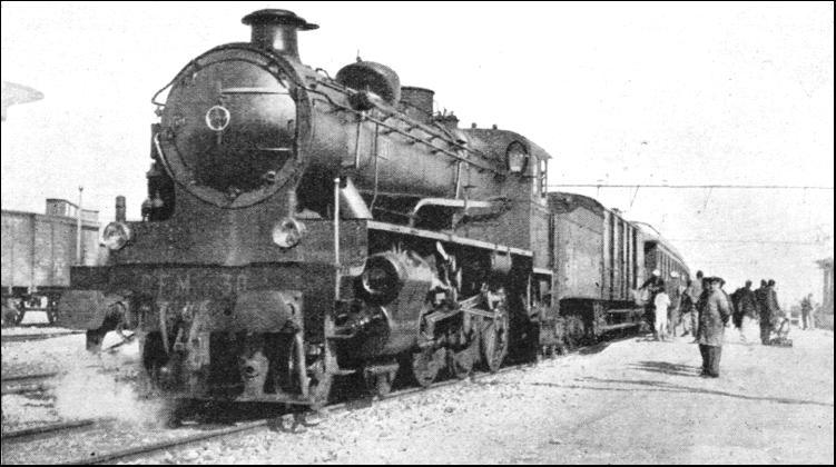 Down these long, steep banks the train must be braked very carefully to prevent it from running away. All the trains are fitted with the Westinghouse brake, which is used for making the station stops; but, to hold the train at a steady speed down mile after mile at 1 in 66. electric regenerative braking is employed on the locomotive. This means simply that when the current is turned off and the train is coasting downhill, the electric motors on the axles, instead of receiving current to drive them, act as dynamos and generate current, which is passed back into the trolley wire. This process keeps the motors and wheels turning at a certain definite speed, and if the locomotive tries to run faster a very powerful braking force is set up in the motors. The current sent back into the overhead wire can be used by other trains going uphill. This ingenious system of braking not only renders absolutely safe the operation of the trains going down steep gradients, but also reduces the amount of current which must be obtained from the power station. To operate the regenerative brake the driver merely has to move a hand switch; after that everything is automatic. Onward from Casablanca the line is level and runs closely alongside the Atlantic through Rabat to Kenitra, now known as Port Lyautey, after the man who raised it from a Moorish village to the second port of Morocco. It was in this section that Lyautey took the greatest personal interest, and at Rabat be insisted on the railway engineers carrying the line under the town in three tunnels, to preserve the Moorish aspect of the old city. After passing the docks at Port Lyautey, which lies two miles up the river, the railway swings inland to Petit Jean. At this junction the Moroccan Railways meet the Tangiers-Fez Railway, and sleeping, dining, and through carriages are exchanged, some going north to Tangiers and the Strait of Gibraltar, and others up to Fez and eastward to Algeria. The Tangiers-Fez Railway is electrified between Petit Jean and Fez, a mountain division with many sharp curves. The locomotives and carriages are very similar to those of the Moroccan Railways. Although there are 355 miles of electrified line from Marrakech, certain trains are still worked by steam in the neighbourhood of Casablanca, but most of the steam trains are now transferred to the 230-miles line running east from Fez to the Algerian frontier. This line belongs to the Moroccan Railways, which is thus split into two divisions, the east and the west, divided by the Tangiers-Fez Railway. The fifty steam engines used are of the 4-6-0 tender and 2-8-2 tank types, built to the standard designs of the Paris-Orleans Railway, to which railway most of them at one time belonged. But though they are French in design some of them are British built, coming from the works of the North British Locomotive Company in Glasgow. The twenty-six electric locomotives are all of the double-bogie type and develop 1,400 h.p., but for passenger trains between Casablanca and Port Lyautey there are ten motor-coaches which haul two or three trailers.