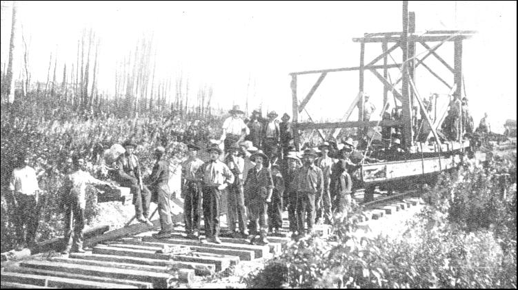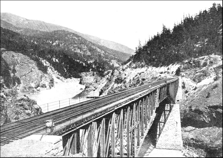 Here is another extract from Fleming's diary which clearly demonstrates what he had to overcome : "The walking is wretchedly bad. We make little headway, and every tree, every leaf is wet and casts off rain. In a short time we are as drenched as the foliage. We have many fallen trees to climb over, and it is no slight matter to struggle over trees 10 ft. and upwards in diameter. We have rocks to ascend and descend ; we have a marsh to cross in which we sink often to the middle. For half a mile we have waded, I will not say picked, our way to the opposite side, through a channel filled with stagnant water, having an odour long to be remembered. Rain continues falling incessantly ; the men, with heavy loads on their heads, made heavier by the water which has soaked into them, become completely disheartened." Although, after his epic survey, Fleming's preliminary allocation was rejected, the mass of the information gathered by Fleming was of inestimable value. Little, however, was done. By the end of 1875 thirteen separate lines had been laid through the valleys of British Columbia, eleven of which converged on the Yellow Head Pass and then ceased. Line after line was located and abandoned. The proposed enterprise, meanwhile, had become the source of political bickerings and quarrels. Sir John Macdonald had promised the line's completion by 1881. In 1879, only 713 miles had been constructed. This delay irritated British Columbia. Secession was threatened if the Dominion Government did not hasten to fulfil its bargain. The Government began anxiously deliberating, what steps should be taken when a company—later known as the Canadian Pacific—intervened and offered to undertake the responsibilities and to satisfy British Columbia by completing the line by the spring of 1891. The company demanded £5,000,000, a free grant of 25,000,000 acres and various other concessions concerning right-of-way. The Government accepted. The work began immediately, and progressed until financial obstacles loomed ahead. London refused to invest another farthing in the enterprise. The Dominion Government had to disburse another six million pounds. This grant solved difficulties for the time, but others rapidly followed. The company had to construct 250 miles each year in order to fulfil its contract, while disputes between sub-contractors arose at every point. Again, comparatively few of the labourers could be relied upon to remain at the work ; many actually divided their time between the Canadian Pacific, the Northern Pacific, and other American lines ! Making superhuman efforts, however, Sir William Van Home, Lord Strathcona and Lord Mountstephen kept the railhead steadily moving forward.