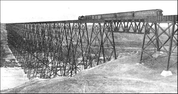 The first transcontinental train was run in 1886. To-day, at Craigellachie, stands an obelisk in commemoration of the completion of the Canadian Pacific Railway. The construction of the Connaught Tunnel was only one of the many revisions and additions the Canadian Pacific Railway has made on its line since it was opened to traffic. Among these improvements was the diversion of the Illecillewaet River, the flood waters of which had threatened the approach to the Connaught Tunnel. Either a viaduct had to be built or the river diverted. The latter course was chosen, and an embankment was thrown up and a great trench dug parallel to the railway through which the river was made to flow. The work at Connaught Tunnel eliminated the windings of the former route that included seven complete circles, and also the wonderful loops by which the engineers of the 'eighties made it possible for trains to descend the mountain slopes. The elimination, too, of the four miles of snow-sheds through which the original line had to pass is certainly one of the most important factors from the traffic point of view. Formerly, during the winter and the spring, this particular stretch of line represented a perpetual source of anxiety ; snow-ploughs and large gangs of men had to be always kept ready to hurry out along the track to deal with an emergency—perhaps an avalanche of crushing dimensions, which had broken up a snow-shed, thus completely blocking the line and suspending all traffic. In re-designing the route the constructors were compelled to abandon the old station of Glacier one and a half miles to the south. A new station bearing the same name has, however, been built near the western portal of the Connaught Tunnel. This district has become a very popular tourist centre. For the convenience of visitors to the Illecillewaet Glacier the railway company had built a large hotel near the first Glacier station. The hotel as not been moved or abandoned, but an excellent road for cars gives the traveller easy access to it. From the new station the track pursues a straight course down the valley, practically parallel with the old line, which it eventually rejoins at Cambie. Another most important improvement on the trans-Canada line has been the construction of an alternative way through the Rocky Mountains. This latter route crossed the mountains at a comparatively reasonable elevation through the Crow's Nest Pass, and incidentally taps a productive coal district. The train on the stretch between Lethbridge and Macleod passes over the famous Lethbridge Viaduct. When the section was first laid, the winding Belly River had to be crossed by a number of wooden bridges, while there were curves of 818 ft. radius and gradients of 52 ft. per mile. When the wooden bridges became unsafe, the engineers decided to rebuild the entire section and introduce two very long bridges. Of these the Lethbridge Viaduct is some 5,320 ft. long. and in one place 314 ft. above the river. The travelling crane which set the steel towers in place weighed over 300 tons. Owing to the terrific pressure of the wind, the riveters had to be protected in a steel cage, and only two lives were lost during the construction. In the building of the Lethbridge Viaduct, over 12,000 tons of metal were used and 7,600 gallons of paint. The story of the building of the Canadian Pacific Railway begins with a small band of pioneers, and ends with one of the greatest railway systems in the world.