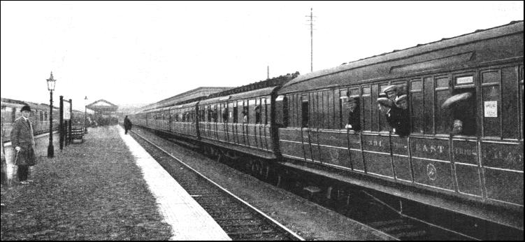 One of the most interesting and old-established cross-country services in Great Britain also has its connexion with Newcastle. Before the war of 1914-1918 a restaurant car express of the Great Eastern Railway left York daily at 4 p.m. for Harwich, on the Essex coast, to make connexion with the Continental steamers to the Hook of Holland and Antwerp. Through coaches, which had come over the Great Central Railway from Liverpool and Manchester, were attached at Lincoln. From Black Carr Junction at Doncaster for ninety-four miles to March, in Cambridgeshire, the train travelled over what was then the Great Northern and Great Eastern Joint Line. Since the grouping of the railways in 1923. however, the working has been altered. The main train with the restaurant cars now starts at Liverpool (Central) at 2.20 p.m. and runs over the Cheshire Lines Committee's main line to Manchester (Central). Here reversal takes place, and to the other end of the train there is attached a three-cylinder 4-6-0 locomotive of the "Sandringham" class, which is stabled at Ipswich, in Suffolk, and has come through from Ipswich to Manchester, a journey of 213 miles, on the previous day. Leaving Manchester at 3.10 p.m. the "North Country Continental," as it is called, threads Woodhead Tunnel on a non-stop run to Sheffield, and then, crossing the East Coast main line on the level at Retford, reaches Lincoln at 5.20 p.m. Here is waiting the portion which left York at 3.30 p.m. This portion incorporates a through coach that left distant Glasgow at 8.40 in the morning, and has come down through Edinburgh and Newcastle, The daily journey of this vehicle is 471 miles and occupies twelve hours forty-nine minutes. Running south through Spalding to March, which is reached at 6.49 p.m., the "North Country Continental" here acquires two through coaches which left Birmingham (New Street) at 4 p.m. and have travelled across country by way of Rugby and Peterborough on the L.M.S. The remaining stage is through Ely and Bury St. Edmunds to Ipswich, and finally to Parkeston Quay, where the boat connexions are made. Parkeston Quay is reached at 9.16 p.m., and Harwich at 9.29 p.m. The entire journey of 268 miles from Liverpool has thus occupied just over seven hours. The train itself, as finally made up from March onwards, is unique as incorporating in one formation through vehicles from Glasgow, Edinburgh, Newcastle, Liverpool. Manchester, Sheffield, and Birmingham—seven of Britain's biggest cities. Another important highway to the east coast, and to Cromer, Yarmouth, and Lowcstoft in particular, is over the Midland and Great Northern Joint Railway, which is connected with the Midland Division of the L.M.S. at Saxby, just south of Melton Mowbray. Trains from Birmingham, via Leicester, and from Liverpool and Manchester, via Crewe, Stoke-on-Trent, and Nottingham. come this way. Reference must also be made to one of the best-known of Britain's cross-country trains—the "Sunny South Express." For many years this was a daily service, but it is now run only at week-ends, except during the height of the summer. This connects Liverpool, Sheffield, Manchester, and Birmingham with Brighton, Eastbourne, and Hastings, and also carries a portion to and from Herne Bay, Margate, and Ramsgate. The heart of London is avoided by means of the West London and West London Extension Railways from Willesden Junction (where the Southern Railway takes the train over from the L.M.S.) through Addison Road. On Saturdays in the summer many other special through cross-country services are run, connecting the great industrial centres with various popular seaside resorts.