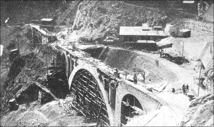 A powerful locomotive, built by one of the great German works, is ready to haul the train, which is composed of two sleepers, a dining-car, and a luggage van. There are also first, second and third-class ordinary coaches between Haydarpasa and Adana. The station and train staff have a smart appearance. The staff of the dining-car is busy taking in large blocks of ice, and fruit is delivered in large baskets. The train leaves at 9.40 a.m. Soon after steaming out of the station we travel among beautiful suburbs, with princely villas among flowering gardens on the coast of the Sea of Marmora and along the Gulf of Ismid. The gulf affords a beautiful view, with Istanbul in the background. After the station ot Ismid the line runs through swampy land on the banks of the Lake Sabaudja, and enters the fertile valley of Sakaria, where tobacco and chillies are cultivated by Muhadjers (Turkish peasants), who were settled here by the Turkish Government. They are mostly immigrants from districts which are now under foreign rule. The line then enters the valley of the Karasu, an affluent of the Sakaria, and rises 950 feet in a distance of seven and a half miles. Bridges, tunnels, and cuttings alternate in almost continuous sequence. The great Anatolian plateau lies in front of us—a vast expanse, intensively cultivated in parts, almost desert in others, where water is extremely scarce. The train reaches the important junction of Eski Shehir, and since 1935 has run thence via Ankara, the capital of Turkey. Eski Shehir is famous for its mosques, which date from the ninth and tenth centuries, and for its hot springs. The former route was via Afyon—the Achrones of antiquity—which is noted for its citadel 370 ft. high, built upon a conical hill. Next came the station of Konia (the ancient Ikonium), where remarkable early monuments are found and some fine mosques. Konia, or Kenya, is a large town, and lies in the centre of a fertile district. Considerable irrigation works were carried out here by the late Anatolian Railway Company, the water being derived from Lake Bey Sekehir Go and conveyed through canals 170 miles long. Konia was the terminus of the old Anatolian Railway, and here begins the Baghdad Railway proper. The first section of the line from Konia to Bulgurlu (127 miles) is laid over flat country, and no engineering works of any importance arc encountered. The plateau lies at an average height of 3,300 ft. The next section from Bulgurlu to Yenice is one of the finest pieces of railway engineering on the line. The line here traverses the Taurus Mountain range in a south-easterly direction towards the coast, and reaches, three miles north of the station of Ouloukichlar, its maximum height at 4,845 ft. above sea-level. The original idea was to pierce the mountain range by one long tunnel, but the necessity of completing the line during the war induced the Government to construct a series of tunnels instead, as this allowed of simultaneous work in several places. The series of tunnels begins at a point 225 miles from Konia. and continues for eight miles as far as the station of Hadjikiri. There are in all twelve tunnels varying in length from 40 to 2,300 yards. Their total length is 7 miles 580 yards, and there are only 1,863 yards of open track between the tunnels, including 362 yards of bridging. The longest bridge is a concrete structure composed of one span of 165 ft., one of 33 ft., and one of 16-1/2 ft. The banks of the rivers are steep, and consist of limestone rock. In many places they are close to one another, forming gorges a thousand feet deep into which the sun never penetrates. The spectacle is often almost terrifying in its weird and sombre grandeur. The construction of the tunnels was a difficult undertaking. For the surveying alone fourteen miles of road had to be constructed, on which several thousand men were employed during a whole year. This in itself was an engineering feat, as the roads were built on top of the mountains and zigzaged down to the gorges To facilitate access to the mouths of the tunnels the concrete bridges over the gorges were built first. This series of tunnels follows the course of the Chakit Torrent, which runs between precipitous high mountains and descends in several cascades from a height of 1,600 ft. between the two end tunnels. The mountains are of a hard limestone rock and, with the exception ot a few pockets of clay which caused some inconvenience, the boring proceeded without incident. The tunnels are lined only in those sections which required strengthening because of the nature of the rock. Ordinary masonry lining was used, with a concrete crown. In the majority of places the tunnel is not lined, as the hard rock is extremely compact. Shortly after leaving this region the train reaches the station of Yenice, which lies 104 ft. above sea-level. We have been travelling over twenty-five hours since we left Haydarpasa. Yenice is the junction for the railway line to Mersina. Our next stop is Adana, a busy and important commercial centre on the banks of the River Sheihun, which we cross on a steel girder bridge 1,040 ft. long. The bridge is composed of four spans of 177 ft. and one of 315 ft. The masonry piers rest on oak piles.